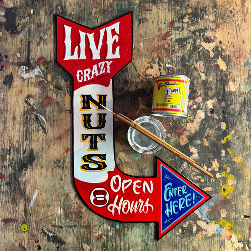 Der ausdrucksstarke Schriftzug steht im Mittelpunkt des Motivs und wird durch eine 5-farbige Siebdrucktechnik lebendig und dynamisch in Szene gesetzt.